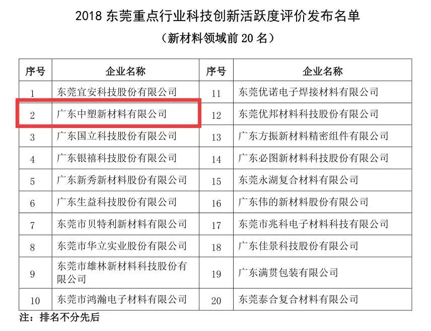 公海gh555000aa线路检测新材料凭借多年来持续的创新能力,获评“2018东莞重点行业科技创新活跃度20强”(排名不分先后)。