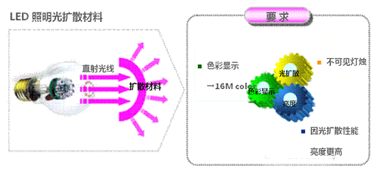 —在LED中,光扩散材料需要隐藏其灯烛并得到高亮度。